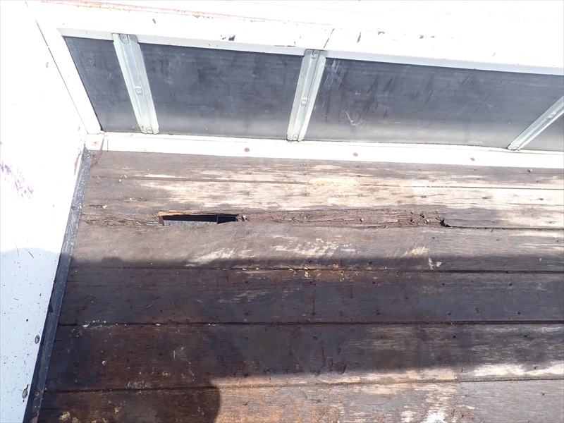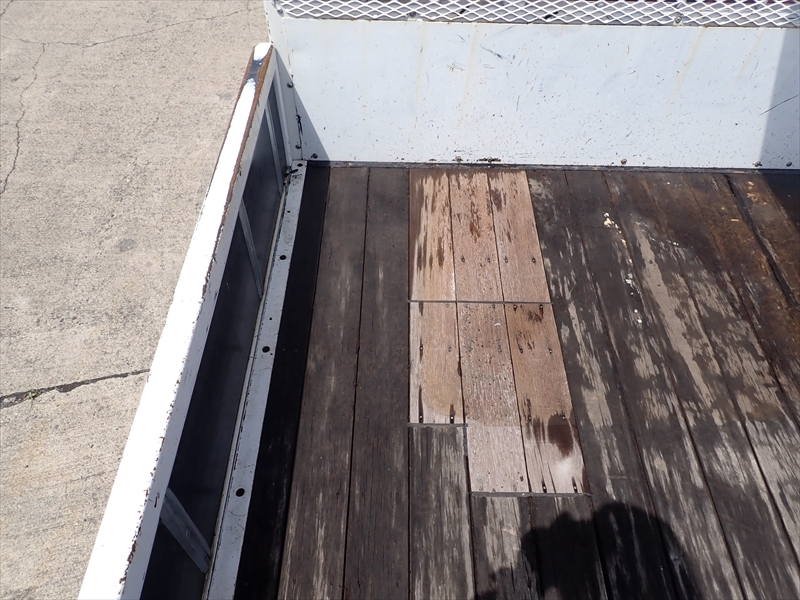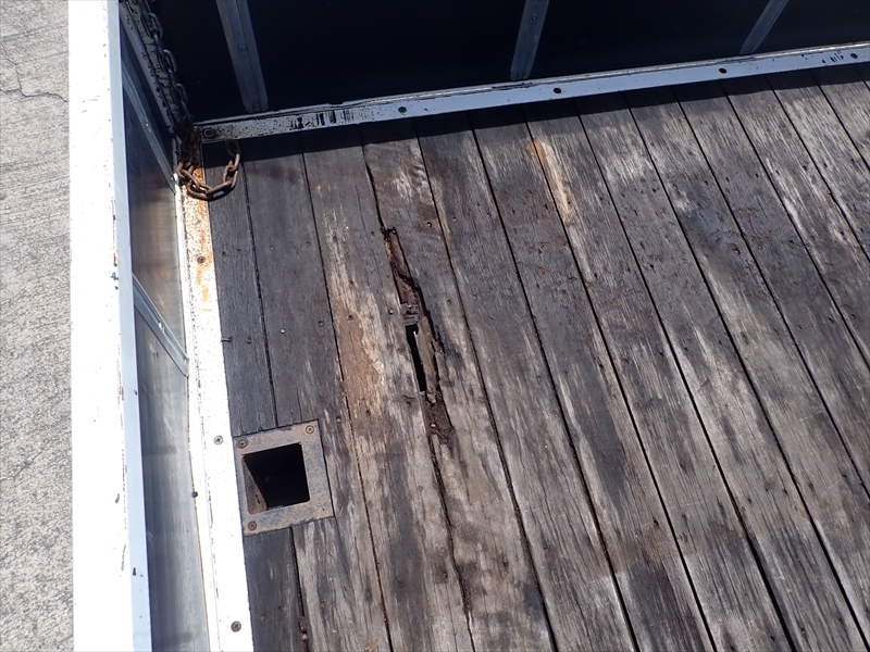 ボディ:左右アオリ曲がり 床前面、補修跡、傷み、穴あき 床面後方穴あき