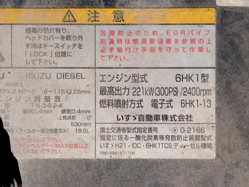 - エンジン:6HK1 221kW 300P/S