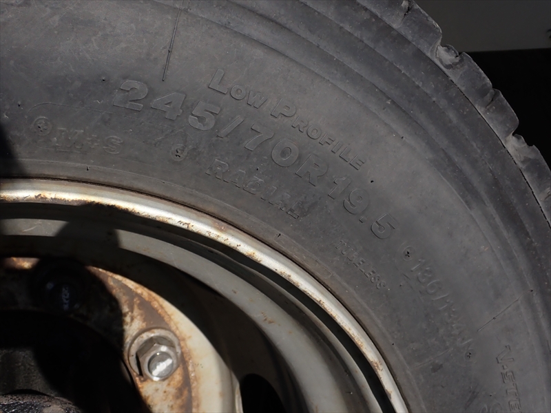タイヤ:フロント255/70R22.5 リヤ245/70R19.5 スタッドレスタイヤ スチールホイール