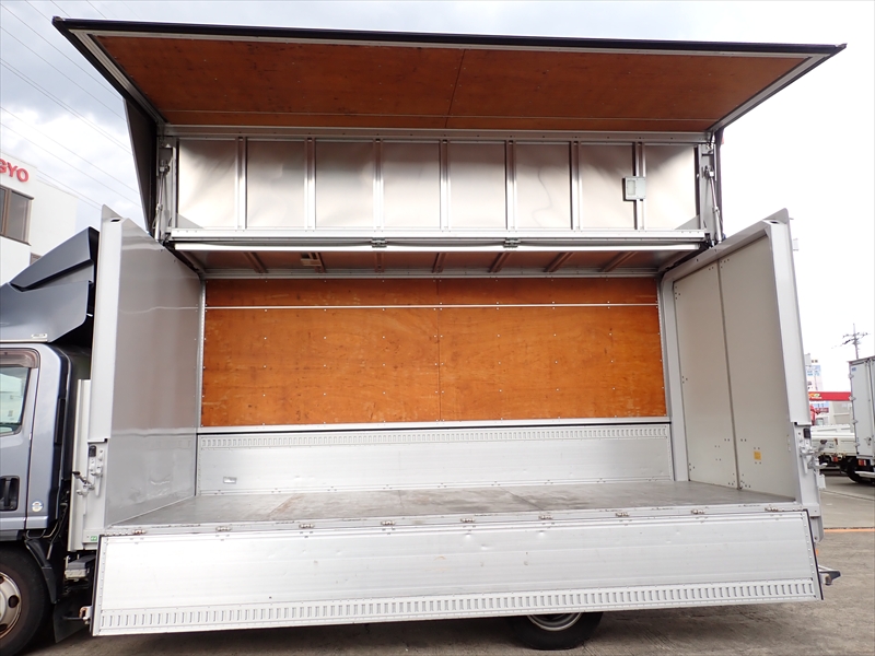ボディ:日本フルハーフ製アルミウイング リヤ観音開き セイコーラック1対 ラッシング1段 引出フック8対 床鉄板張り